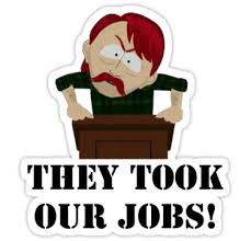 So now Labour are in opposition and of course all the Tory niceties (Greenest party ever was it? Fracking is it?) are dispensed with and we are down to business what do the labour party do? Well they complain about foreign workers coming over here and taking our jobs. I recall the brilliant South Park episode where this happened: They took our jobs. They took er jobs. Thtooerjbs!!